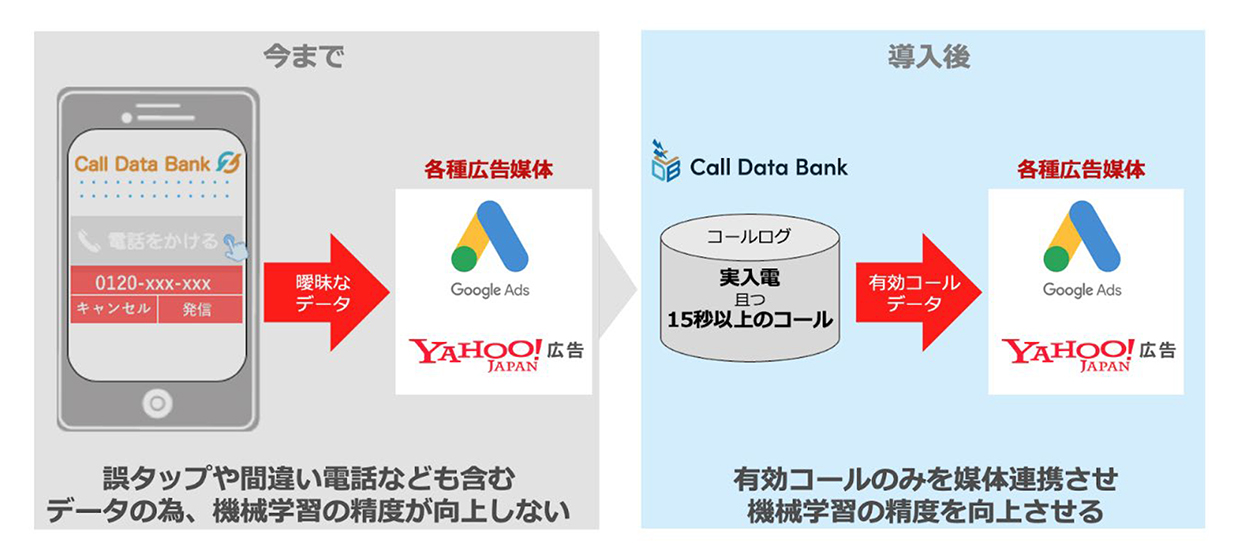 実際にかけた広告費に対して、売上までを一気通貫で計測できることで、より正確で効果的なマーケティング施策をご提案できます。この座組みを作る上でコールデータバンクは必須になっております。